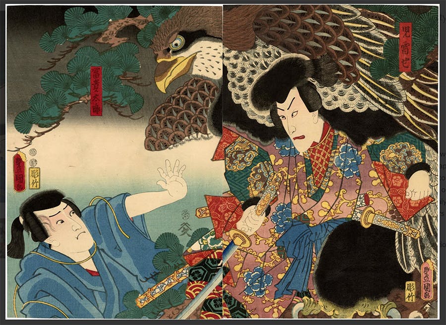 This exhibit explores depictions of one of Japan's most famous kabuki actors, Danjuro VIII ((1823 - 1854), by Japan's most prolific and successful (in his own lifetime) ukiyo-e print designer, Utagawa Kunisada (1786 - 1865). Its focus is Kunisada's portrayals of Danjuro VIII in 5 plays in which Danjuro played leading roles between 1851 and 1854.