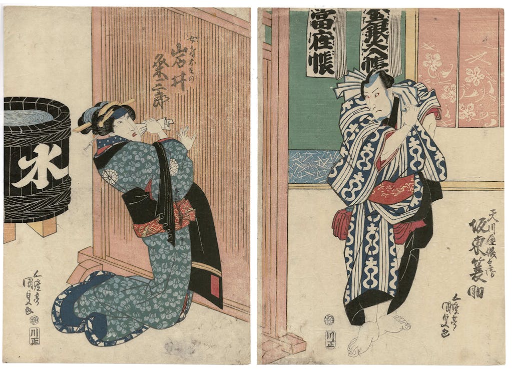 The fact these prints are available 160 years later at affordable prices I find astounding. Demand for Japanese prints today is high, but great also is the supply. Kunisada likely designed over 20,000 prints during his 55 year career. I am fascinated by his vision, his ability to endlessly innovate in the creation of this prodigious quantity of art. A guess as to the total number of his prints that were made? My guess is perhaps 6 million. The Museum of Fine Arts in Boston has in its collection over 10,000 prints designed by Kunisada. Imagine!